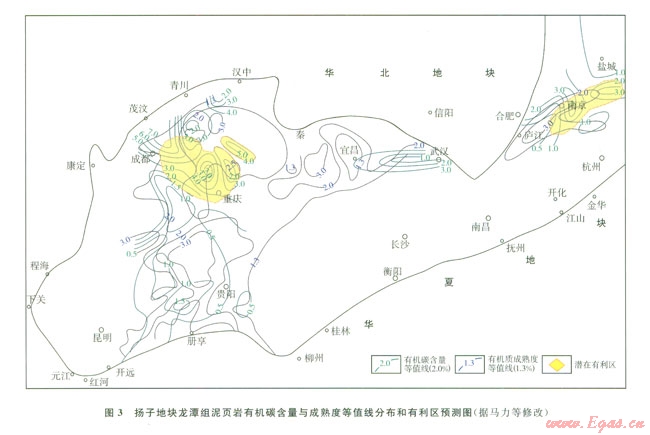 2)綜合分析以上要素后認(rèn)為,龍?zhí)督M頁巖氣成藏條件縱向上看:中、上段優(yōu)于下段,橫向上頁巖氣的有利地區(qū)為上揚子川中、川東、渝西北和下?lián)P子蘇南地區(qū)。