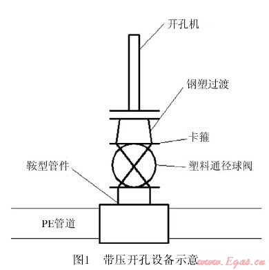 另外一種情況,國內大型塑料制品商結合自身管材、管件特點開發(fā)出了適用其產(chǎn)品系列的帶壓開孔設備,比如亞大塑料制品公司的帶壓開孔設備,見圖1。