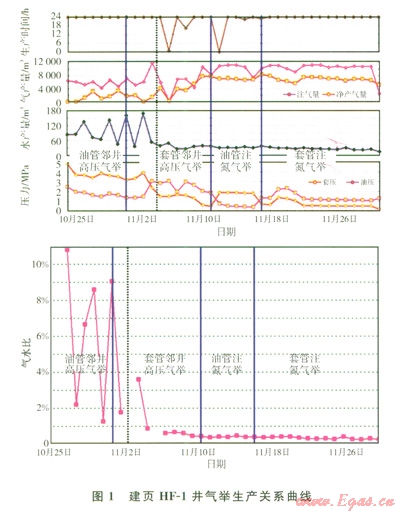 氣舉氣源主要有膜制氮?dú)夂吞烊粴?/font>[7]。鄰井有高壓氣的井選天然氣氣舉,鄰井沒(méi)有高壓氣的井選擇膜制氮?dú)鈿馀e。膜制氮?dú)鈿馀e比天然氣氣舉在注氣量、產(chǎn)氣量、產(chǎn)水量等方面更平穩(wěn)(表1)。