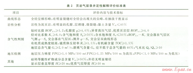 頁(yè)巖氣層錄井定性解釋評(píng)價(jià)標(biāo)準(zhǔn)見(jiàn)表2。