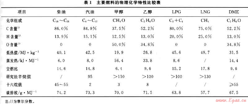 在石油供應及其價格隨世界地緣政治和經濟形勢變化而不斷劇烈波動的21世紀,天然氣作為發(fā)動機燃料有很多優(yōu)點:單位熱值(比能量)最高,尾氣排放最少,C02排放僅為同熱值汽柴油排放量的3/4,利于改善大氣質量,供應可靠,價格低且穩(wěn)定少波動。主要燃料的物理化學特性比較見表1[2]。
