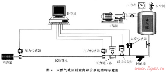 由于目前國內(nèi)天然氣減阻劑的研究尚處于實驗階段,還沒有建立起天然氣減阻劑減阻性能評價標(biāo)準(zhǔn)。參照現(xiàn)有“原油減阻劑減阻性能評價系統(tǒng)”,與中國石油管道科技研究中心合作設(shè)計制作了國內(nèi)首個天然氣減阻劑室內(nèi)評價系統(tǒng),其結(jié)構(gòu)示意圖如圖2所示[6]。