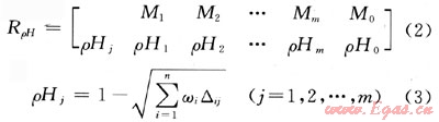 式中RρH為ρ個事物的H個模糊特征的復(fù)合物元;Mi為第i個事物(i=1,2,…,m);wi為第i個事物評價指標(biāo)的熵權(quán);△ij(i=1,2,…,n;j=1,2,…,m)為標(biāo)準(zhǔn)模糊物元R0n與復(fù)合從優(yōu)隸屬度模糊物元