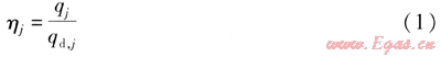 根據(jù)JGJ 132—2009《居住建筑節(jié)能檢測標(biāo)準(zhǔn)》,熱力入口水力平衡度ηj的計算式為: