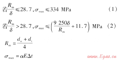 進(jìn)一步降低壁厚,取值1.30DN,是否經(jīng)歷過最大循環(huán)溫差的運(yùn)行考驗(yàn)有待進(jìn)一步證實(shí)。