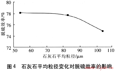 ④ 石灰石的平均顆粒粒徑越小,爐內(nèi)脫硫效率越高。但石灰石粒徑過小時,會在爐膛內(nèi)停留時間太短,且無法被分離器捕捉送回,從而影響其利用率及脫硫效率。