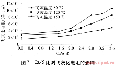 ⑦ 爐內(nèi)脫硫?qū)︼w灰比電阻的影響