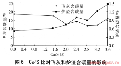 ⑥ 爐內(nèi)脫硫?qū)︼w灰和爐渣含碳量的影響