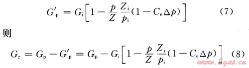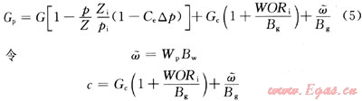 根據(jù)補(bǔ)給氣藏物理模型,應(yīng)用物質(zhì)平衡原理,假設(shè)氣藏有底水或邊水水侵,并考慮巖石與束縛水膨脹的影響,推導(dǎo)出補(bǔ)給氣藏物質(zhì)平衡方程: