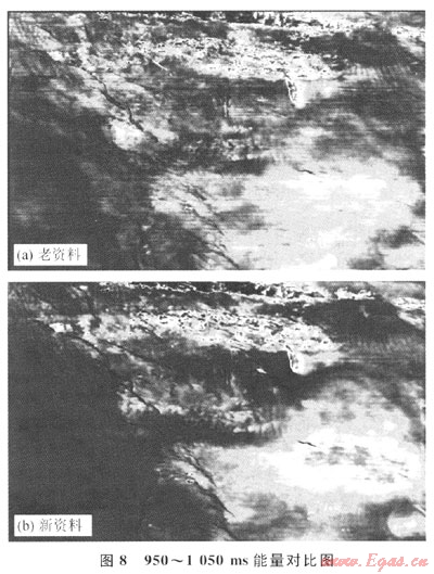 采用潮汐靜校正、面元中心化及剩余靜校正處理是通過(guò)疊前處理來(lái)減小要疊加的道集間的差異,從而達(dá)到衰減采集腳印的目的,屬于保真保幅處理。在文昌工區(qū)中,通過(guò)該套技術(shù)的應(yīng)用,工區(qū)內(nèi)嚴(yán)重的采集腳印都得到了衰減,大大改善了資料的信噪比,提高了剖面的整體成像質(zhì)量(圖7、8),為精細(xì)刻畫、描述地質(zhì)構(gòu)造形態(tài)和預(yù)測(cè)油氣儲(chǔ)層分布及有利油氣富集區(qū)帶,提供了可靠的地震資料。