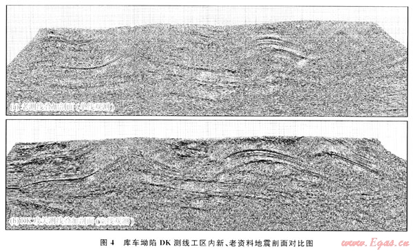 摘要:塔里木盆地庫車坳陷的地震資料受到復(fù)雜地表結(jié)構(gòu)和地腹地質(zhì)條件的影響,普遍存在著信噪比低、剖面品質(zhì)不高的問題,制約了油氣勘探開發(fā)的進(jìn)程。為此,在庫車坳陷DK二維地震攻關(guān)測線施工中,以寬線觀測系統(tǒng)、大基距組合接收(巨厚黃土堆積帶采用9串檢波器面積組合接收,老巖層出露的復(fù)雜山體區(qū)采用3串檢波器“三”字形組合接收)為核心采集技術(shù),開展詳細(xì)表層調(diào)查,利用地震工程遙感技術(shù)選擇合理的激發(fā)點(diǎn)和接收點(diǎn),同時(shí)增加目的層的覆蓋次數(shù),強(qiáng)化激發(fā)和接收條件,從而提高了單炮記錄的信噪比,改善了地震剖面的品質(zhì),為庫車坳陷構(gòu)造形態(tài)的重新認(rèn)識(shí)提供了良好的地震資料。攻關(guān)試驗(yàn)的成功表明,該套技術(shù)方法在其他類似地區(qū)也具有很好的推廣應(yīng)用價(jià)值。