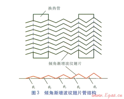 關(guān)鍵詞:波紋翅片管換熱器 均勻傾角波紋翅片 傾角漸增波紋翅片