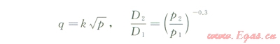 式中q為流量,m3/ min;p為壓力,kPa;k為流量—壓力系數(shù),與管徑大小有關(guān);D1和D2分別對應(yīng)壓力p1和p2時(shí)的液滴直徑。