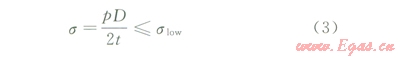 式中P為管道試壓壓力或運(yùn)行壓力,MPa;D為管道外徑,m;t為管道壁厚,m;s為內(nèi)壓產(chǎn)生的環(huán)向應(yīng)力,應(yīng)不超過管道的屈服強(qiáng)度,MPa。