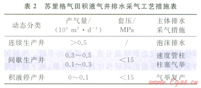 加強排水采氣成熟技術的規(guī)?;瘧茫纬闪瞬煌愋蜌饩潘蓺饧夹g對策(表2);積極開展數(shù)字化關鍵設備與控制軟件的研發(fā),低產低效井排水采氣技術應用成效顯著。2012年開展各類排水采氣2330口井/4.36萬井次,累計增產氣量4.86×108m3。