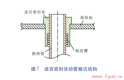 采用端面填料函密封的活動管箱式結構時,一組管箱的制造安裝費用為7.64×104元。采用迷宮密封活動管箱式結構時,一組管箱的制造安裝費用為13.52×104元。前者的使用壽命為l0~l2個月,后者的使用壽命為6年以上。因此,在滿足使用壽命的前提下,采用迷宮密封活動管箱式結構的空氣預熱器的技術經濟性可以接受。