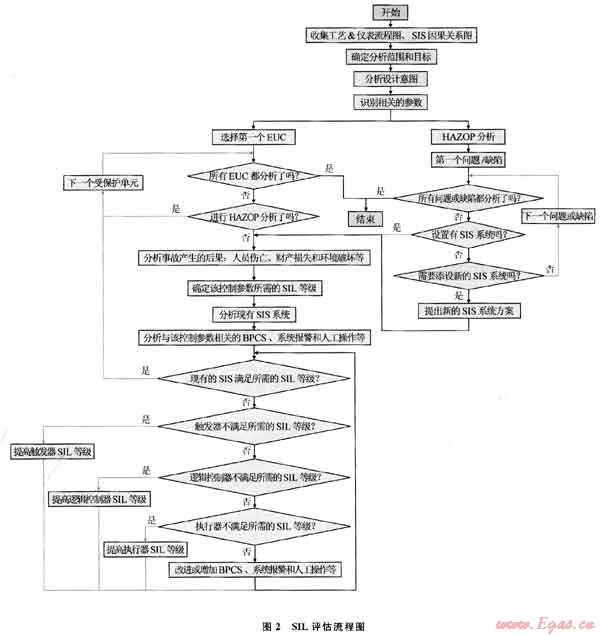 圖2所示的流程包括了確定需求資料、確定評估范圍和目標、HAZOP分析、確定評估對象所需的SIL等級和驗證評估對象SIS系統(tǒng)現(xiàn)有的SIL等級等,充分利用了HAZOP分析的成果,對HAZOP識別出來的問題或缺陷進行SIL評估,而另一方面,對沒有進行HAZOP分析的SIS進行單獨的SIL評估。若SIL等級達不到所需要求,可以識別出SIS系統(tǒng)中SIL等級不夠的單個或多個元件。通過這樣的分析,既解決了HAZOP不能詳細分析SIS的缺點,又解決了SIL評估可能漏項的缺點,為盡可能全面地對評估對象進行安全分析并找出SIS潛在的不足提供了一種更為有效的安全評估方法。