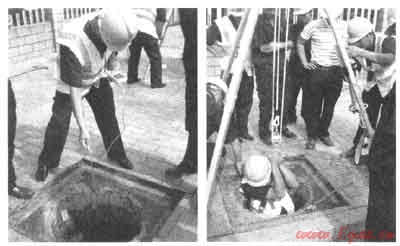4) 密閉場(chǎng)地外的現(xiàn)場(chǎng)要配備合適的起重設(shè)備,例如設(shè)有吊重裝置的三腳架,配合救生繩及安全帶作救援之用;