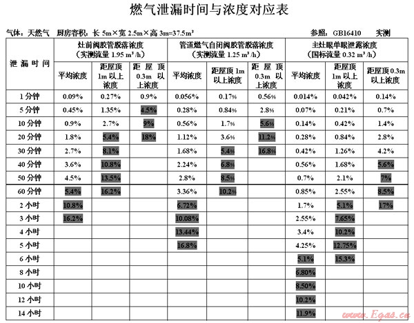 我們在大量實(shí)驗(yàn)基礎(chǔ)上,總結(jié)出了《燃?xì)庑孤r間與濃度對應(yīng)表》(見附表),我們將爆炸危害程度分為一級危害(閃爆、著火、自家受損)、二級危害(玻璃幕墻、外墻倒塌,建筑物受損)、三級危害(整棟房屋倒塌、人員傷亡慘重、影響巨大)。