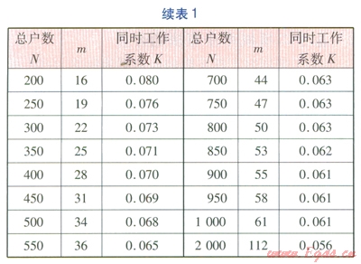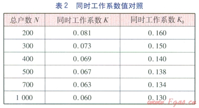 將計算結果與GB 50028—2006((城鎮(zhèn)燃氣設計規(guī)范》附錄F中推薦的同時工作系數(shù)值(設為K0)進行對照,見表2。