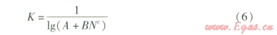 函數(shù)的y軸平移A個單位得到。y軸的平移是必要的,而自變量按比例調整更為重要,同時為了保證同時工作系數(shù)的精度,將自變量進行加冪運算。因此,在式(5)的基礎上對擬合函數(shù)的形式進行改造,則函數(shù)表達式就變?yōu)椋?span lang="EN-US">