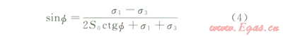 0.5(s1-s3)=[0.5(s1+s3)+S0ctgf]sinf (3)