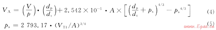 式中V為LNG儲罐內(nèi)的氣相空間,m3;p為LNG儲罐內(nèi)的操作壓力(絕壓),Pa;dp/dt為大氣壓力變化速率,Pa/h;ps為LNG儲罐內(nèi)氣液界面的過飽和壓力,Pa;VT1為LNG儲罐滿罐靜態(tài)蒸發(fā)率的一半(即對應(yīng)于儲罐內(nèi)僅有20%LNG時的液位),kg/h;A為LNG儲罐內(nèi)氣液界面面積,m2。