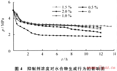 2.2.3抑制劑濃度對水合物生成的動力學影響