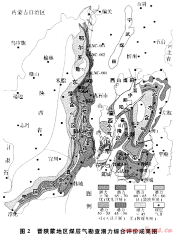 晉陜蒙地區(qū)煤層氣勘查潛力綜合評價(jià)成果如圖2所示。