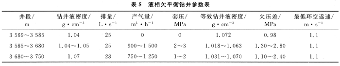 實(shí)際第三次開鉆欠平衡鉆進(jìn)中,采用液相欠平衡技術(shù)達(dá)到了欠平衡條件,充氣設(shè)備一直待命未用。其施工過(guò)程可以分為兩個(gè)階段。