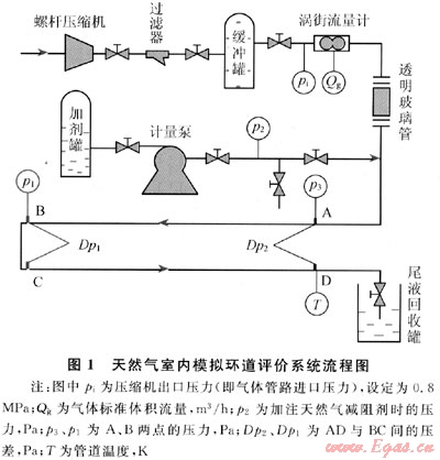 根據(jù)對天然氣管輸減阻劑性質(zhì)及作用機理的研究,設(shè)計了天然氣室內(nèi)模擬環(huán)道評價系統(tǒng),如圖1所示。