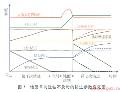 2.1.1.1地面送鉆不及時(shí)鉆進(jìn)參數(shù)變化規(guī)律