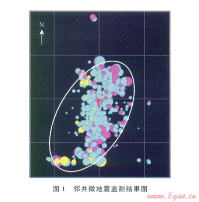 四川盆地上三疊統(tǒng)須家河組五段是川西坳陷最主要的烴源巖發(fā)育層段,地層孔隙度為3%左右,滲透率為0.01mD左右,為典型的低孔隙度、低滲透率頁巖氣藏,需進(jìn)行縫網(wǎng)壓裂才能實(shí)現(xiàn)有效增產(chǎn)。該層段脆性指數(shù)為54,水平段應(yīng)力差異系數(shù)為0.24,且發(fā)育大量天然裂縫,具備壓裂形成復(fù)雜裂縫的條件[11-12]。前期微地震監(jiān)測表明該層段壓裂形成了復(fù)雜裂縫,結(jié)果如圖l所示。