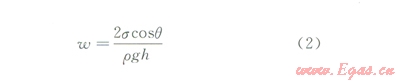 重力本質(zhì)上是由地心萬有引力產(chǎn)生的,由于頁巖儲(chǔ)層較厚,壓裂液返排過程中毛細(xì)管力與重力同時(shí)以阻力的性質(zhì)發(fā)生作用。假設(shè)裂縫寬度為w,高度為h,壓裂液與頁巖的表面張力為s,接觸角為q,壓裂液的密度為r,存在一個(gè)毛細(xì)管壓力與重力接近的臨界寬度w,即