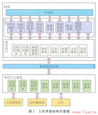 3)服務(wù)接口層提供了各類應(yīng)用與后臺(tái)服務(wù)交互的接口,主要包括實(shí)時(shí)庫接口、關(guān)系庫接畫面刷新服務(wù)接口、事件服務(wù)接口、權(quán)限服務(wù)接口、文件服務(wù)接口等。服務(wù)接口層實(shí)現(xiàn)了應(yīng)用對(duì)服務(wù)的透明性訪問。