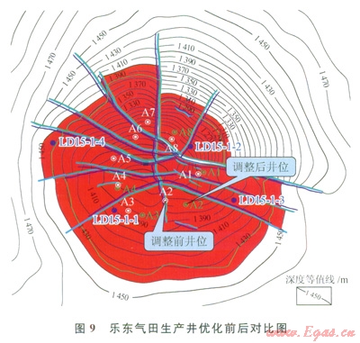 如前所述,筆者工作中采用的3種改進(jìn)方法均能有效地提高斷層,特別是微、小的解釋精度,但單一的方法有時還是會難以給出最優(yōu)解釋方案。因此,工作中結(jié)合了常規(guī)的斷層解釋方法和這3種特殊的解釋手段。經(jīng)多體綜合解釋得到樂東15-l穹隆背斜構(gòu)造的斷層空間展布和組合關(guān)系,這為氣田的開發(fā)方案優(yōu)化提供了可靠的基礎(chǔ)。圖9是結(jié)合筆者斷層描述結(jié)果優(yōu)化前后的樂東15-1氣田開發(fā)井對比圖,從圖9中可以看到,優(yōu)化后的井位規(guī)避了生產(chǎn)井鉆到斷面的風(fēng)險,同時確保了每個儲量規(guī)模大且又相對獨(dú)立的斷塊均有生產(chǎn)井動用到。此外,在生產(chǎn)井軌跡優(yōu)化過程中還考慮到了斷面空間分布對后期生產(chǎn)井側(cè)鉆的影響。