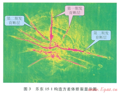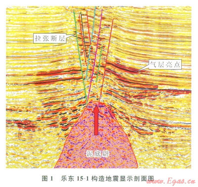 樂東l5-1構(gòu)造中的每條斷層因其所處位置的差異。所受泥底辟應(yīng)力的作用也存在差異。因此,各斷層的特征和活動強(qiáng)度也各不相同??傮w上說,斷距在背斜頂部最大,向翼部斷距逐漸變小直至消失,斷層延伸長度最大約6.5km,落差為0~180m。