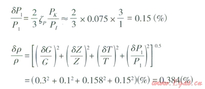壓縮系數(shù)不確定度,按GB/Gl7747.2—1999計(jì)算,其值為0.1%