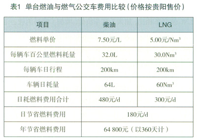 (4)LNG公交車兩天加一次氣,比CNG公交車減少了加氣次數(shù),且兩天為加氣往返里程減少一次,如貴陽每次加氣所需的往返里程平均5km左右。為此,采用LNG公交車既減少了為加氣所需的往返里程,又節(jié)約了因往返里程產(chǎn)生的燃料消耗與運(yùn)行費(fèi)用。若按照一次加氣所需的往返里程5km計(jì),一年(以360天計(jì))一輛LNG公交車可節(jié)約900km,可年節(jié)約天然氣270m3。