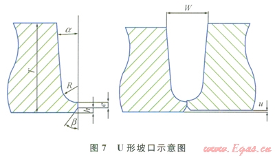自保藥芯焊絲自動(dòng)焊接工藝所用坡口形式為U形坡口(圖7)。