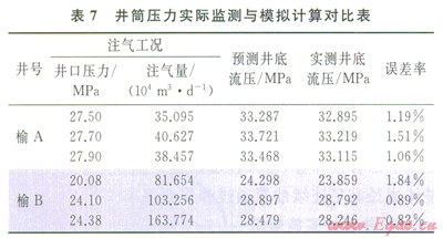 榆林南注采試驗井榆A和榆B井注氣過程中,井筒壓力損失分析見表7所示,計算壓力損失與實測的誤差小于2%?,F(xiàn)場試驗表明,室內節(jié)點分析軟件模擬計算結果符合氣井實際運行工況。