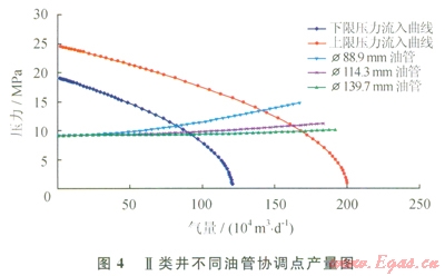 綜合考慮注采井協(xié)調點產(chǎn)量、沖蝕流量、攜液生產(chǎn)能力等因素。按照儲氣庫上限壓力(指地層壓力)24.6MPa、下限壓力l9.1MPa兩種情況,井口壓力6.4MPa,計算不同油管的最大合理產(chǎn)量。