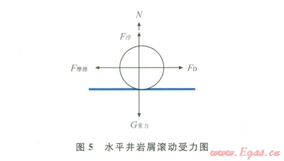 要確定單顆粒巖屑滾動前進最小氣液量則需要建立水平方向上的數(shù)學方程: