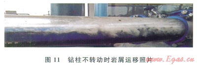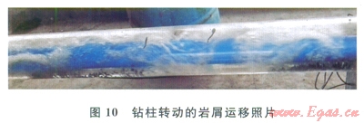 圖10、11分別為鉆柱轉動、鉆柱不轉動時的巖屑運移實驗現(xiàn)象。