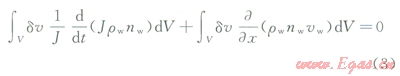 式中J為儲層孔隙的體積改變率,無因次;nw為孔隙中液體體積與儲層總體積的比值,無因次;rw為儲層液體密度,kg/m3;x為液體流動的方向向量,m;dt為時間步,s;uw為儲層液體的流動速度,m/s。