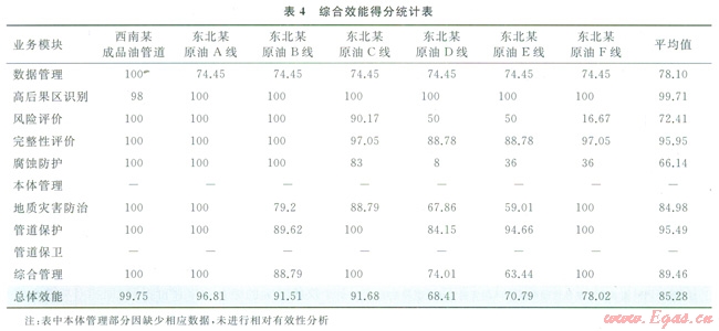 筆者建立的管道完整性管理效能評價指標(biāo)體系和評價方法,曾在2家管道公司進行了試點應(yīng)用。