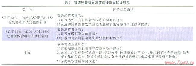 由于管道完整性管理的概念引入較晚,目前國內(nèi)法規(guī)還沒有針對管道完整性管理效能評價的相關(guān)要求。目前國內(nèi)主要遵照執(zhí)行是將ASME B31.8S及API ll60等同采納而轉(zhuǎn)標(biāo)的2個推薦性行、世標(biāo)準(zhǔn),即《SY/T 6621—2005輸氣管道系統(tǒng)的完整性管理》及《SY/T 6648—2006危險液體管道的完整性管理》,其中對于效能評價的相關(guān)要求與ASME B31.8S和API 1160的內(nèi)容一致。