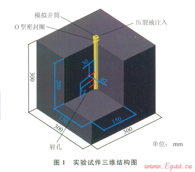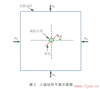 以上情況與定向射孔參數(shù)和目標地層性質(zhì)(地應狀態(tài)、地層非均勻性等)密切相關。然而目前對此問研究甚少。筆者采用大型真三軸水力壓裂物理模擬驗系統(tǒng)[13]進行了室內(nèi)物模實驗,研究了定向射孔水壓裂人工水力裂縫的形態(tài)和影響因素,并對完井和裂施工提出了一些工程建議。