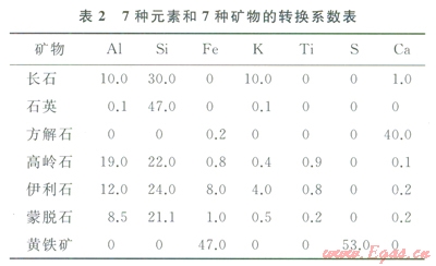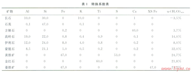 表l是Herron等人給出的一個9種礦物的轉(zhuǎn)換系數(shù),其中的XS Fe表示剩余鐵,w(H2O)min表示礦物中的水含量。