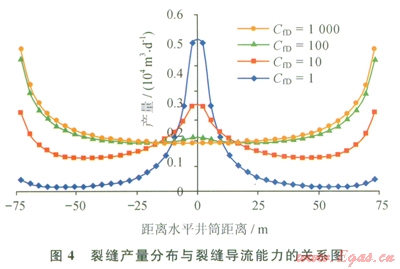 4.4 裂縫產量分布與裂縫導流能力的關系
